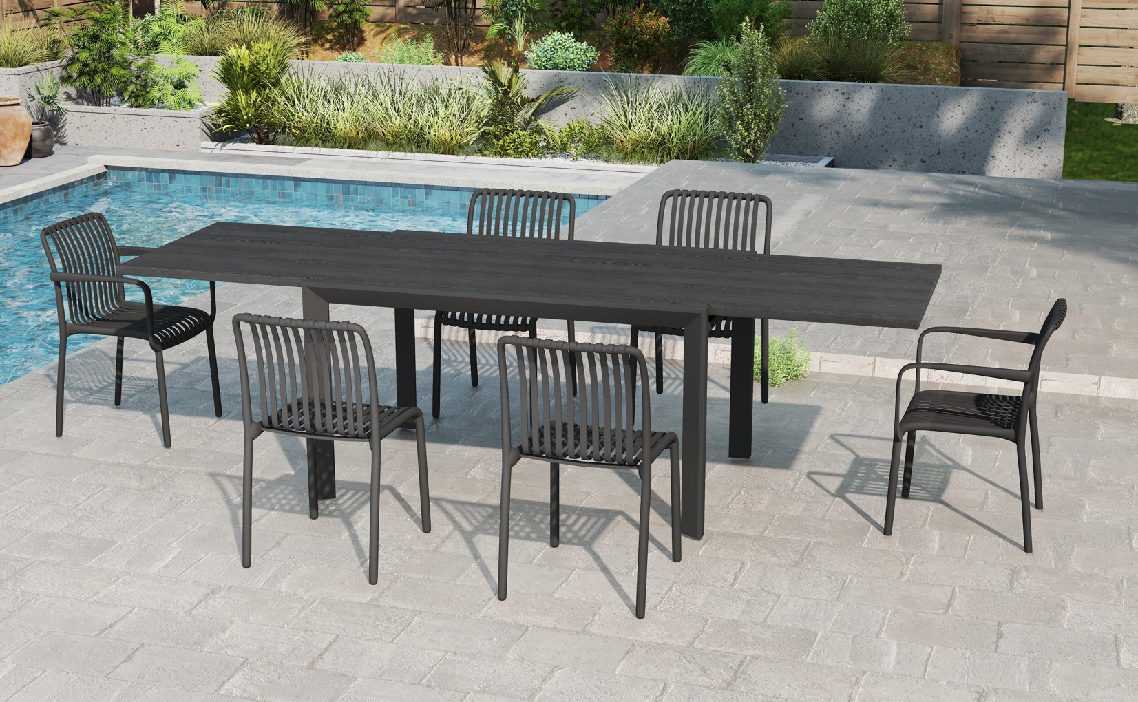 Garðborð útdraganl. ál 135/270x90x75cm grátt