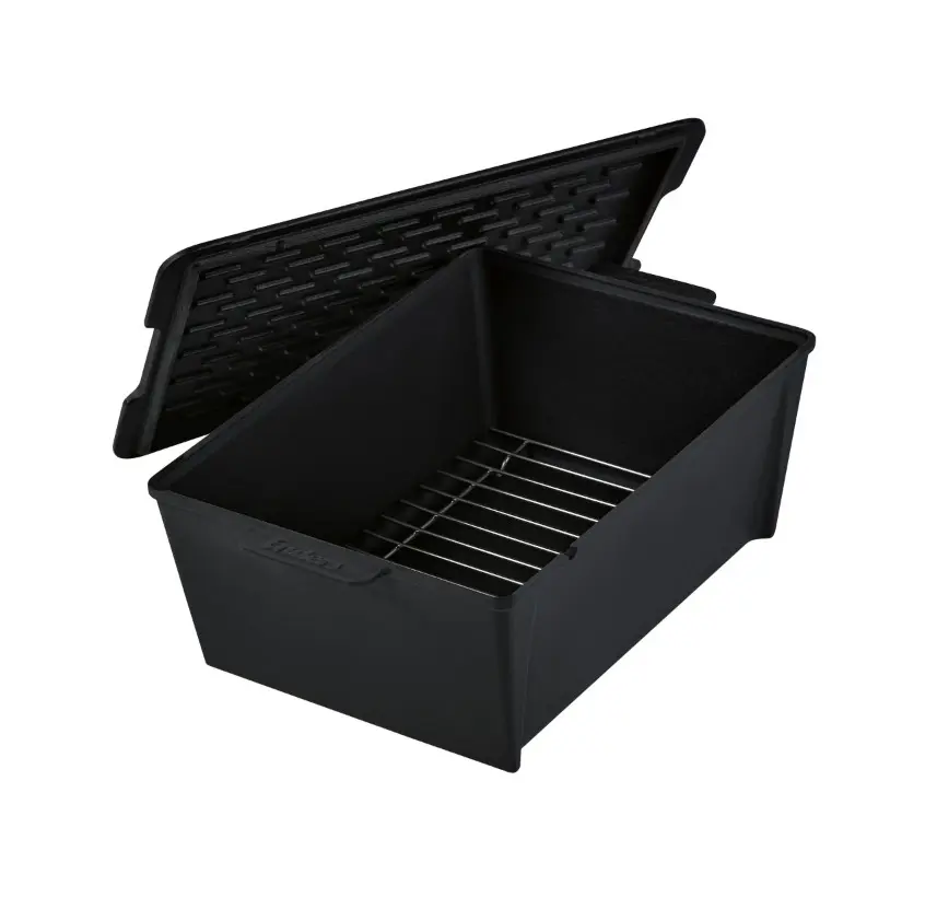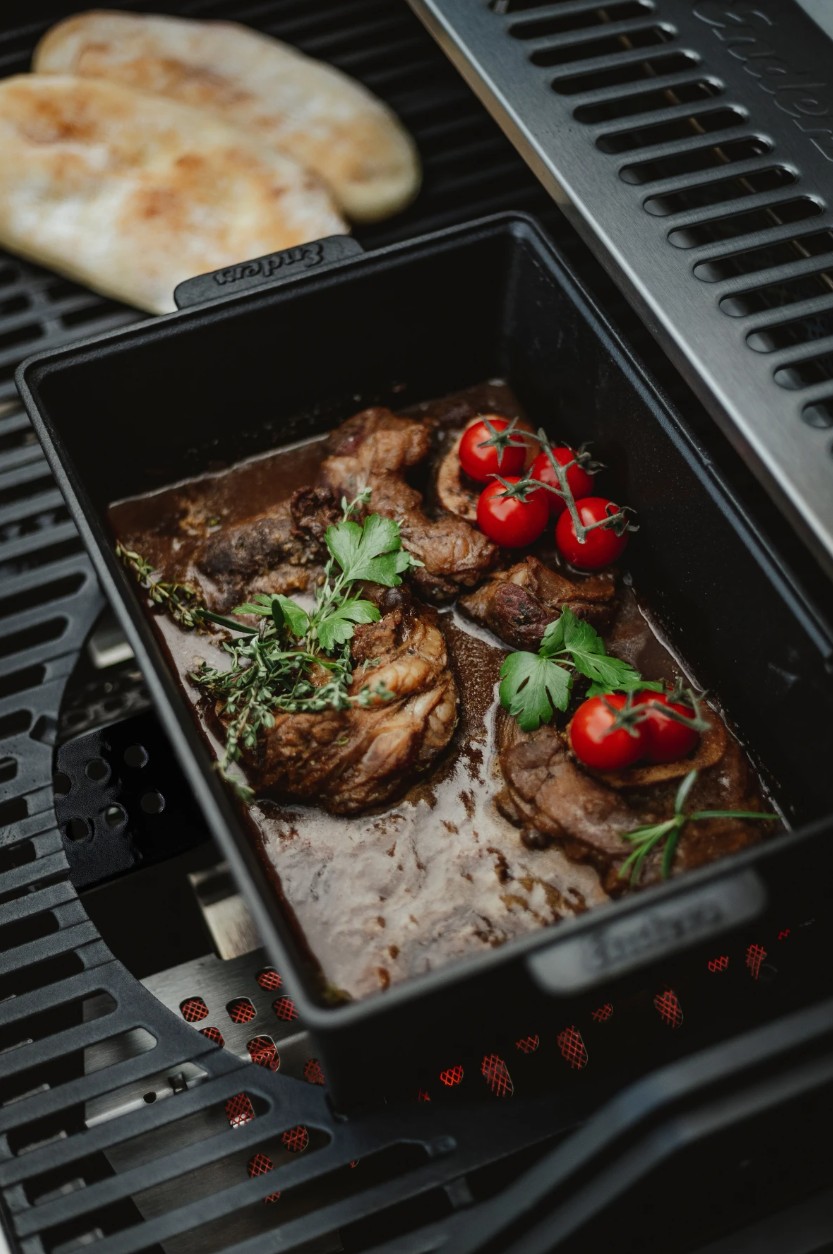 -Hentar fyrir Enders Switch Grid, en einnig hægt að nota á hefðbundna grillgrind eða í ofni -Tilvalið til að útbúa matarbrauð, plokkfisk, ofurmjúk, safarík rif eða jafnvel til að baka brauð - Gegnheilt, emaljerað steypujárn (4 mm vegg- og botnþykkt) tryggir framúrskarandi hitahald og hæga, jafna hitalosun -Sérstakt mynstur innan á lokinu tryggir að þéttivatnið dreifist jafnt yfir matinn og það helst safaríkt -Viðbótarop á lokinu gerir hitamælingu kleift þegar lokið er lokað -Einstakt bragð þökk sé stöðugum alhliða hita í pottur -Mjög hentugt fyrir milda og holla matreiðslu - pottarúmmál: 5,5 l H 22,5 x B 13 x D 34,5 sm Þyngd 7,1 kg