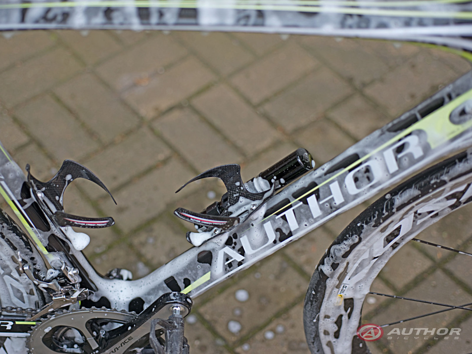 Skolið hjólið vandlega og spreyið hjólið með hreinsiefninu og látið standa í 3-5 mínútur.