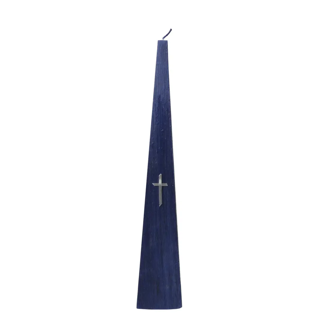 Píramídakerti dökkblátt með krossi 45cm