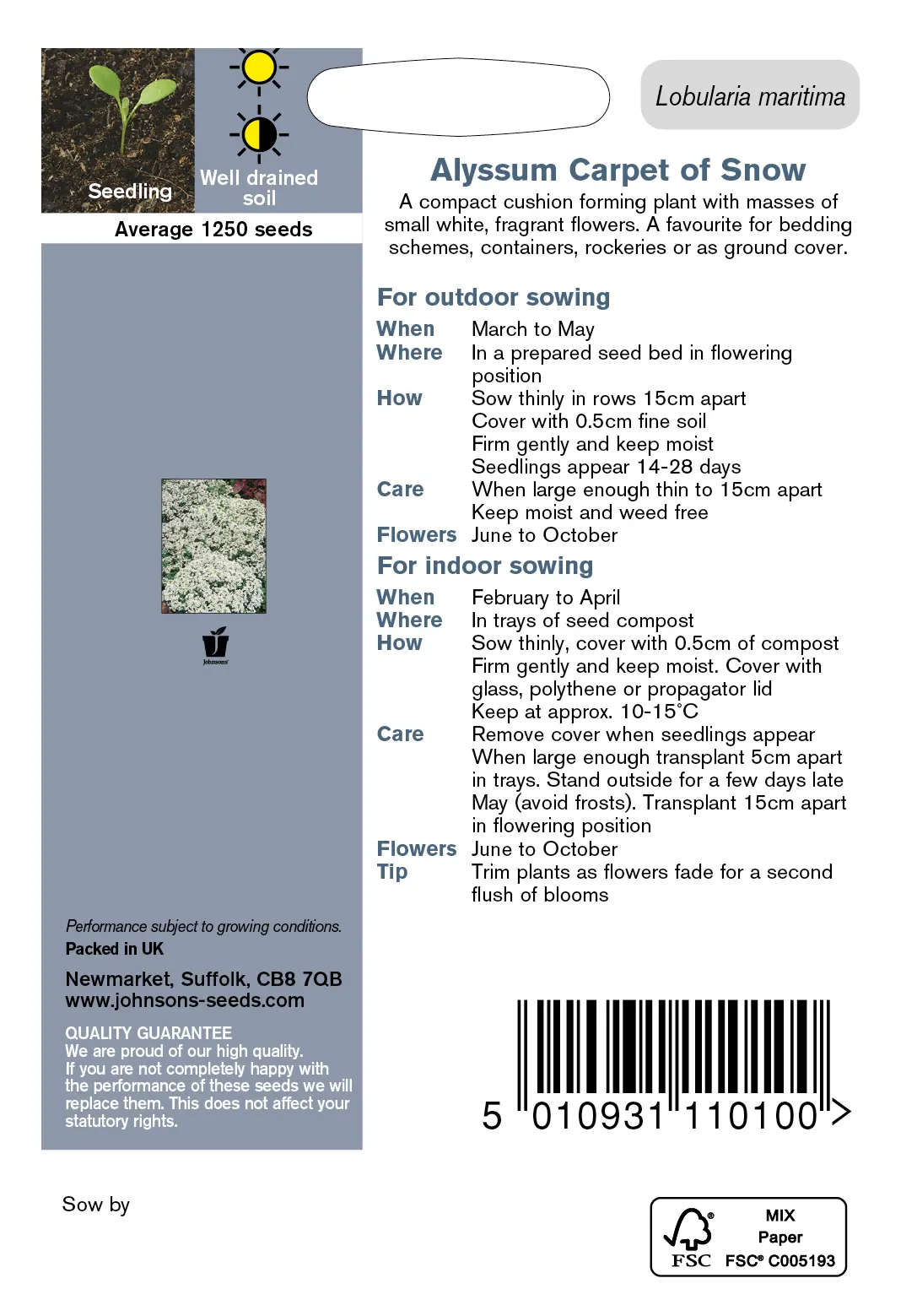 - Fræ Alyssum Carpet of Snow