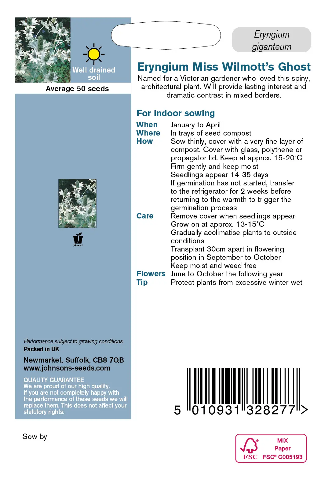 - Fræ Eryngium Miss Willmotts