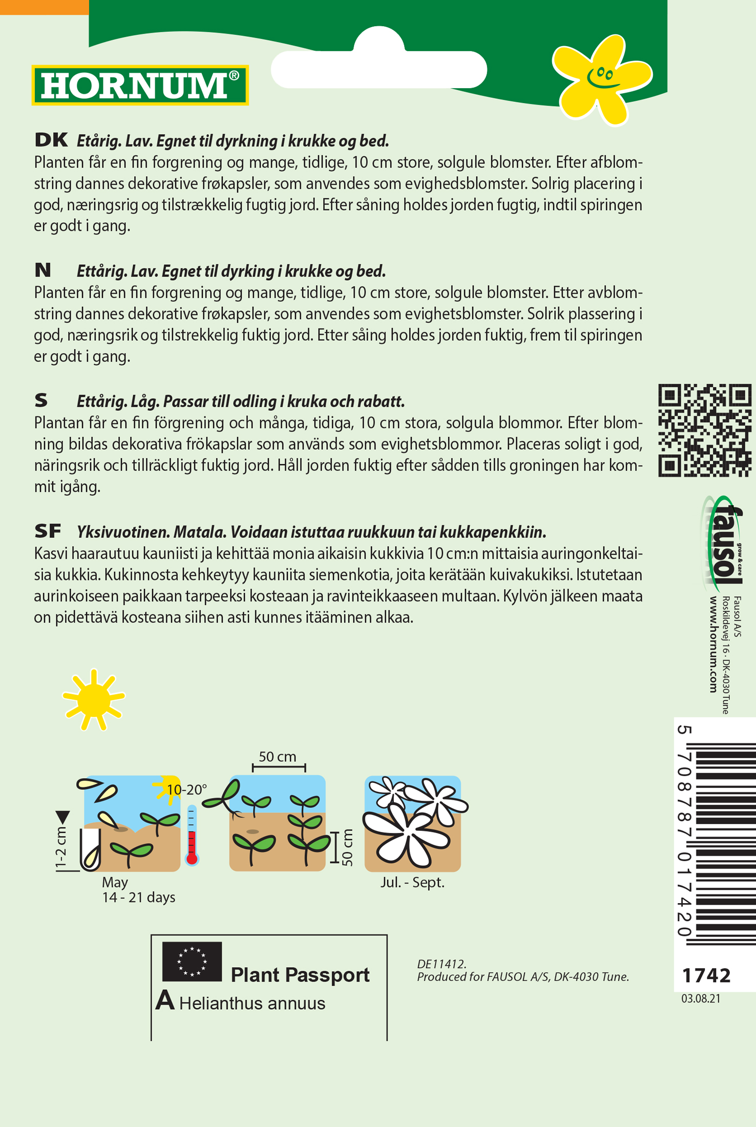 - Fræ Sólblóm Helianthus annuus Pacino