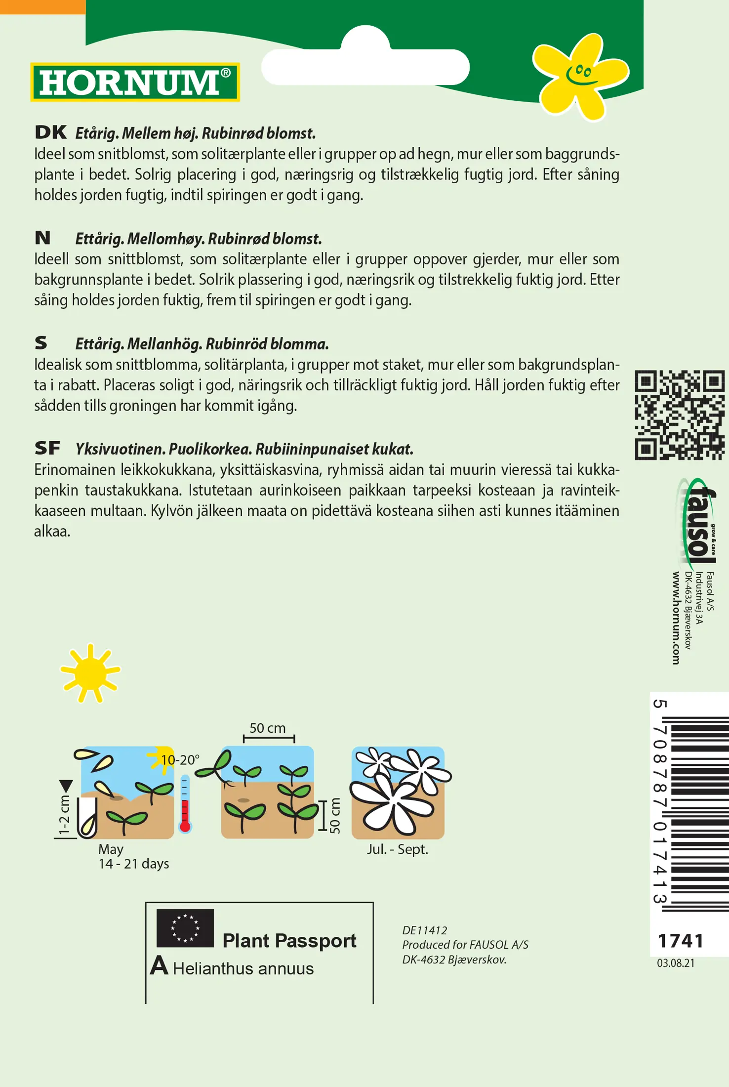 - Fræ Sólblóm Helianthus annuus Velvet Queen