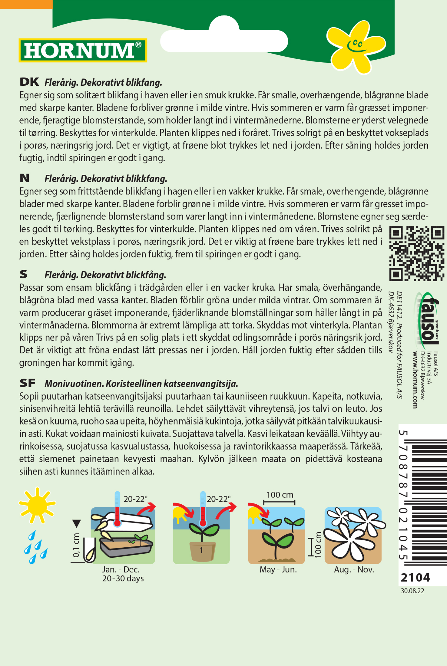 - Fræ Gras skraut Cortaderia selloana Pampas