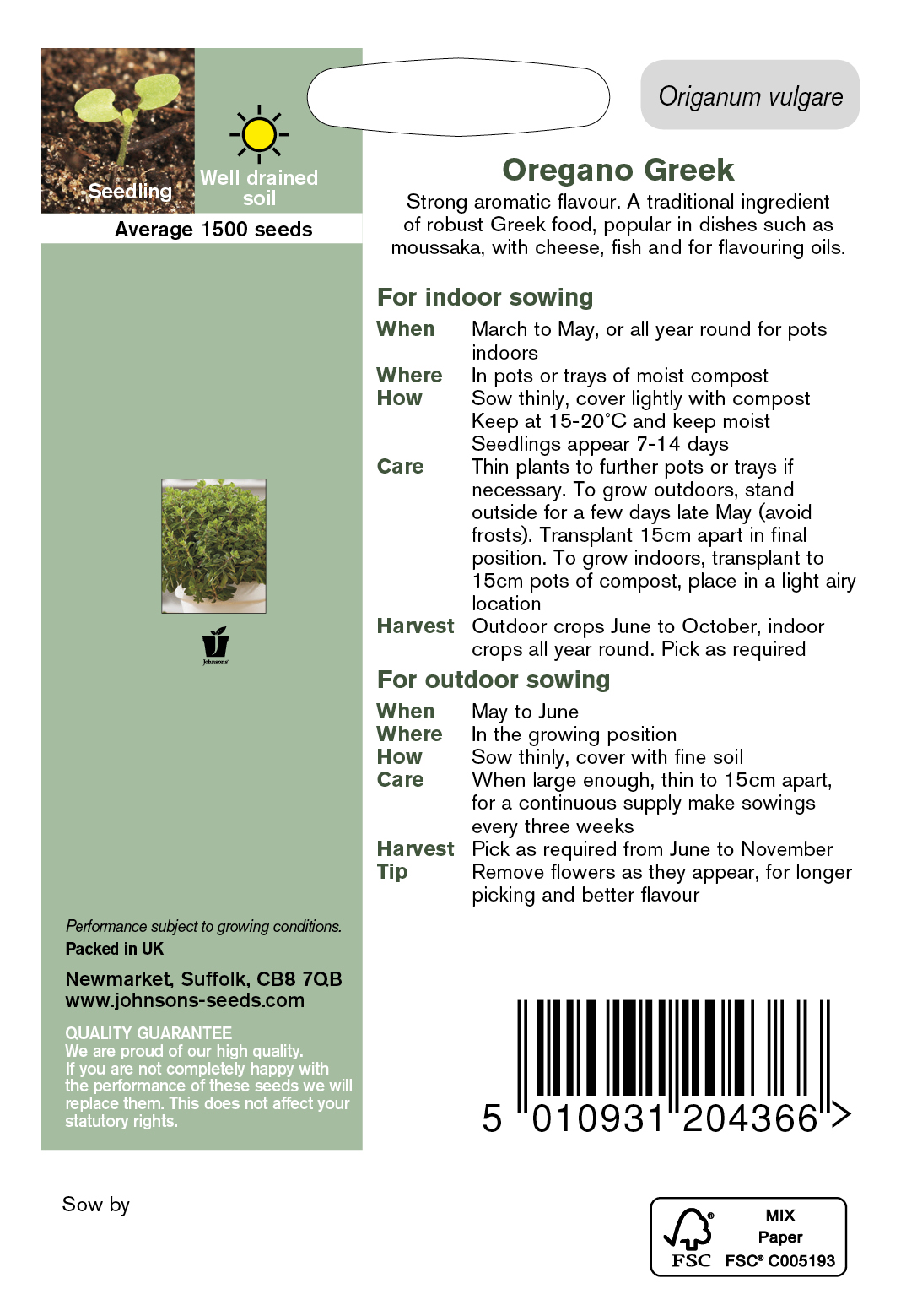 - Fræ Oregano Greek