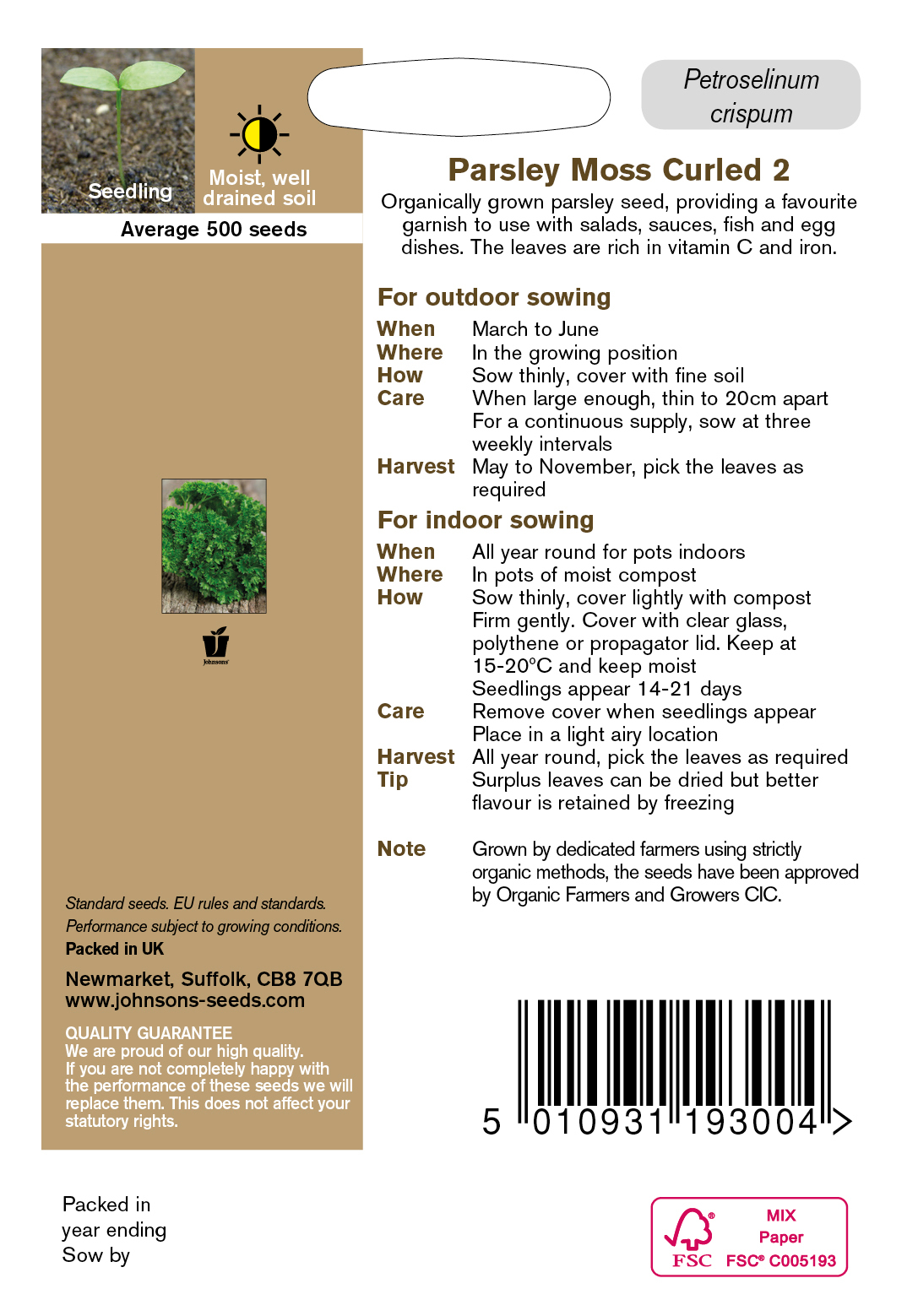 - Fræ Parsley Moss Curled 2 Organic