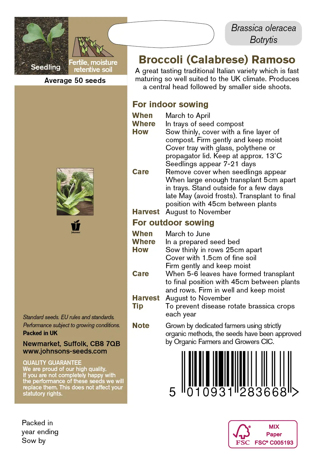 - Fræ Broccoli (Calabrese) Ramoso Organic