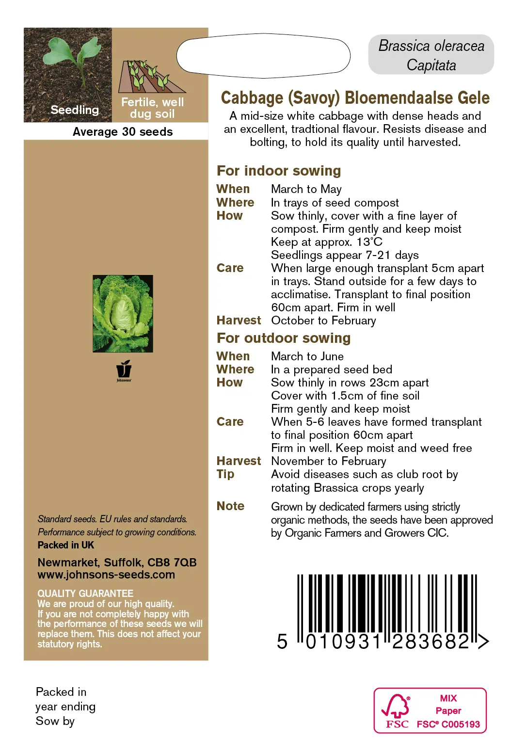 - Fræ Cabbage (Savoy) Bloe mendaalse Gele Organic