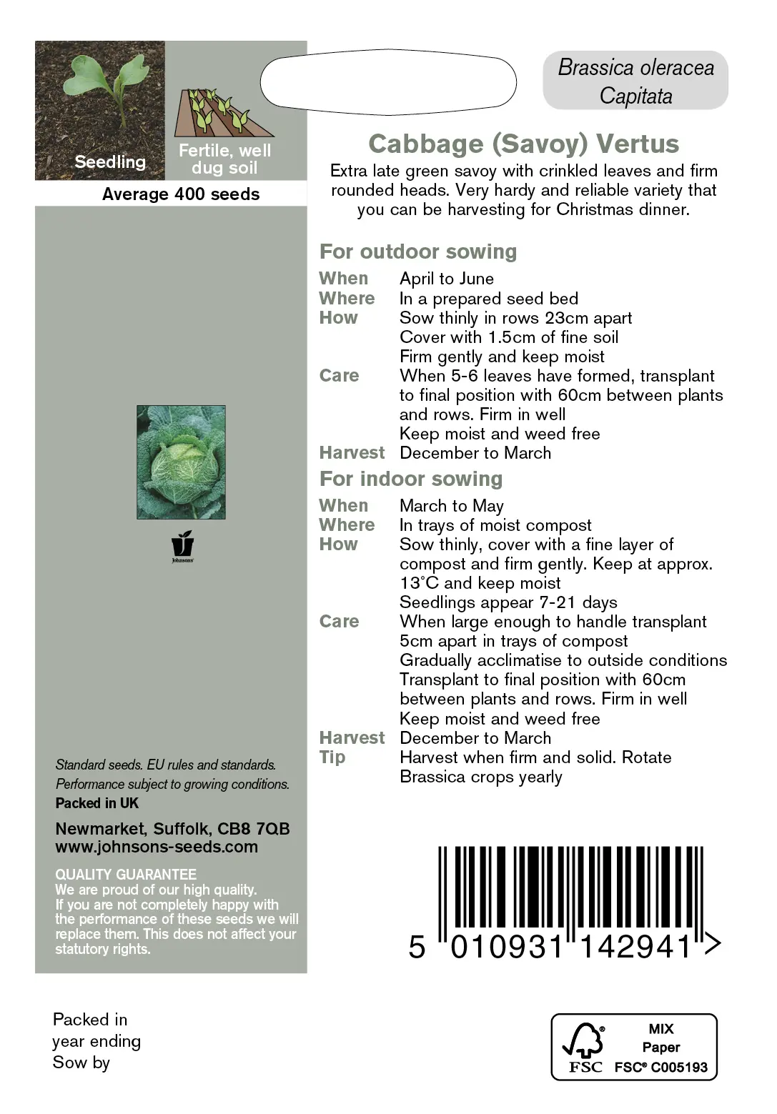 Fræ Cabbage (Savoy) Vertus