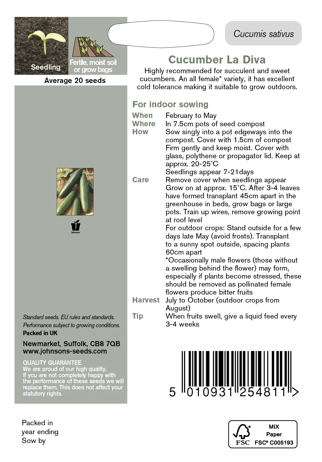 - Fræ Cucumber La Diva