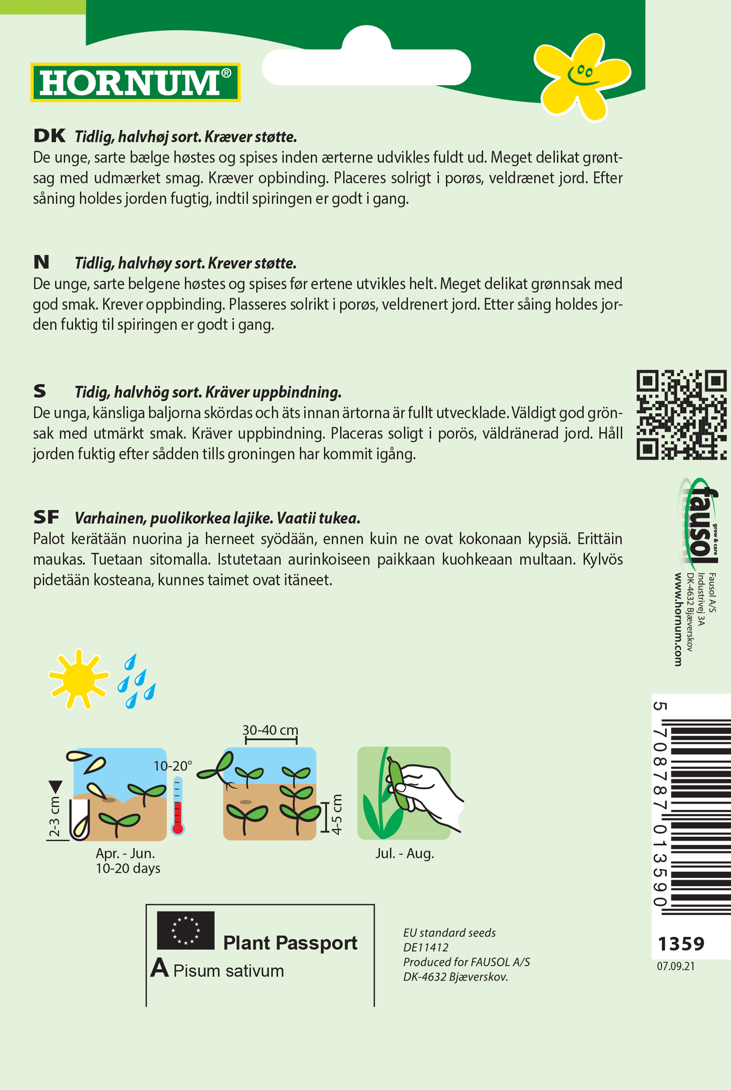 - Fræ Ertur Pisum sativum Vroege Hendriks
