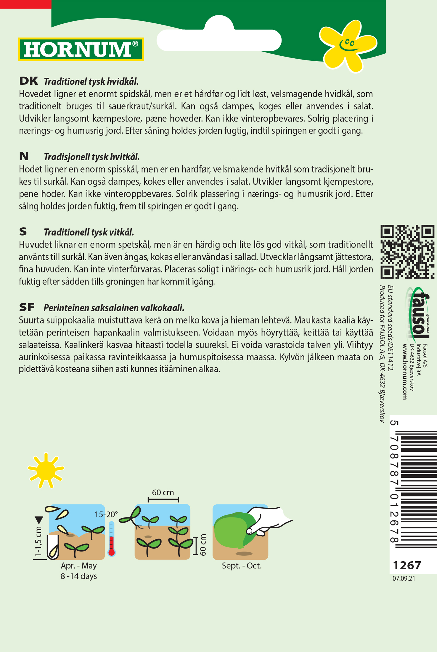 - Fræ Hvítkál Brassica oler. Capitata alba Filderkraut