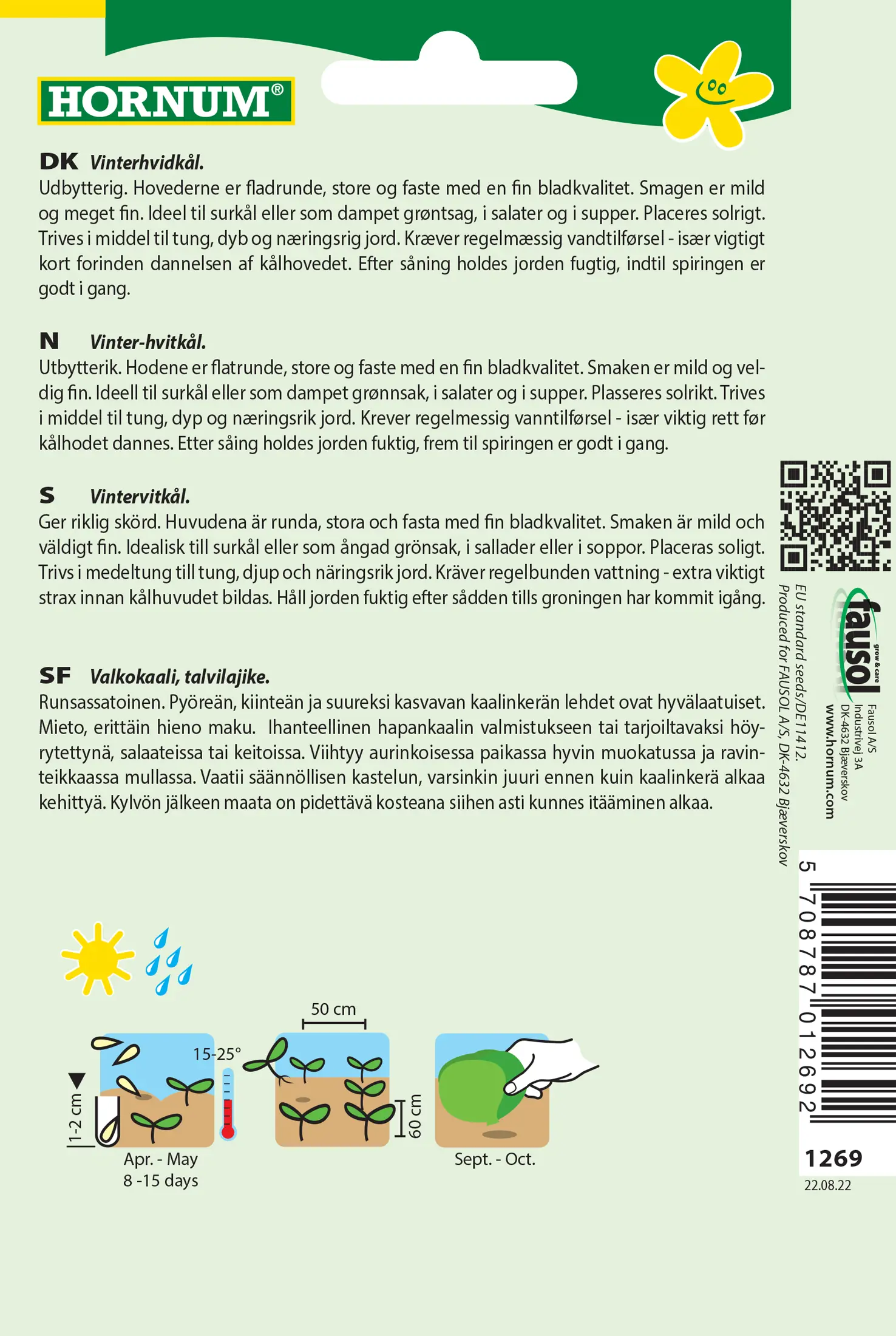 - Fræ Hvítkál Brassica oler.capitata alba Brunswick
