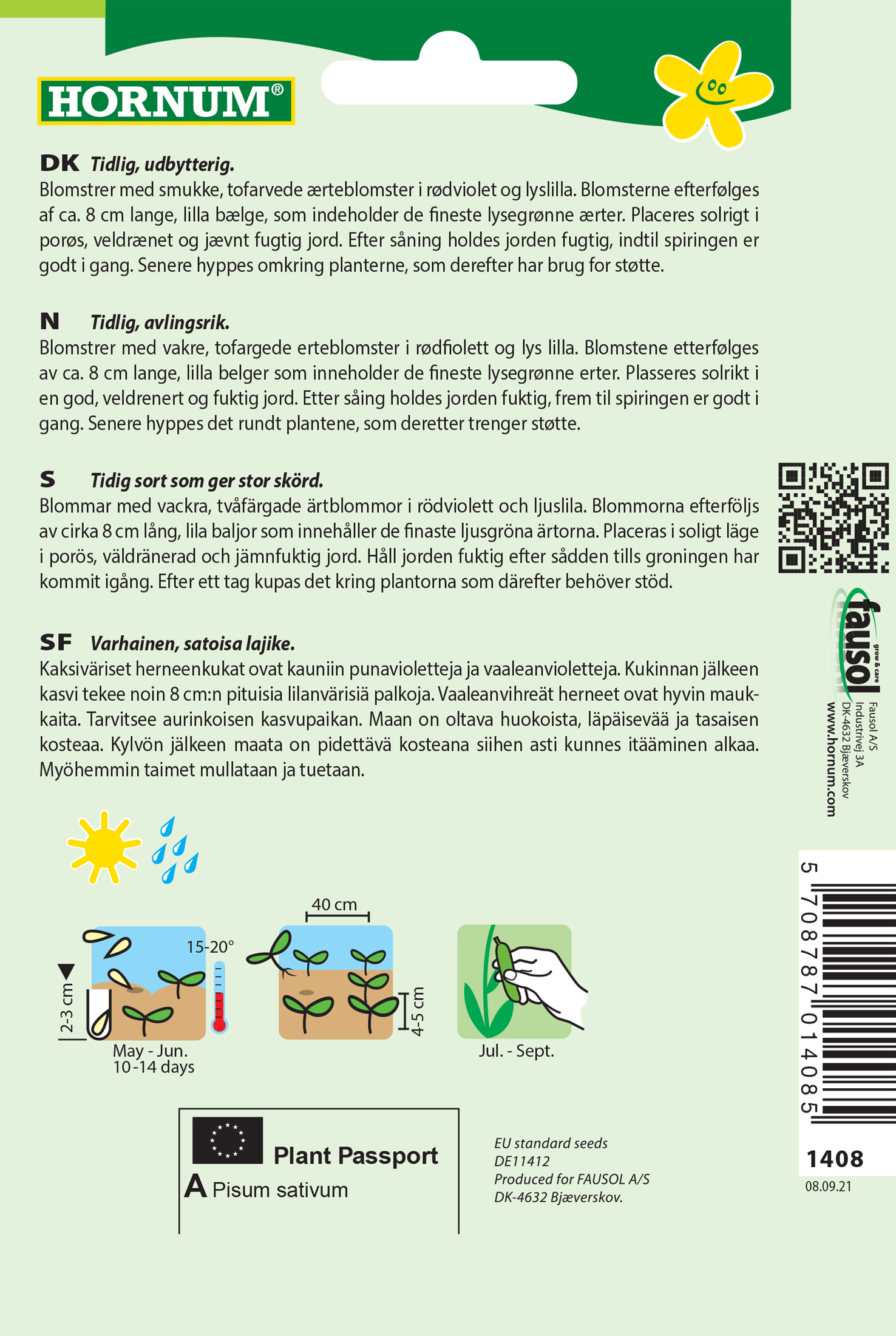 - Fræ Matbaun Pisum sativum Blauwschokker