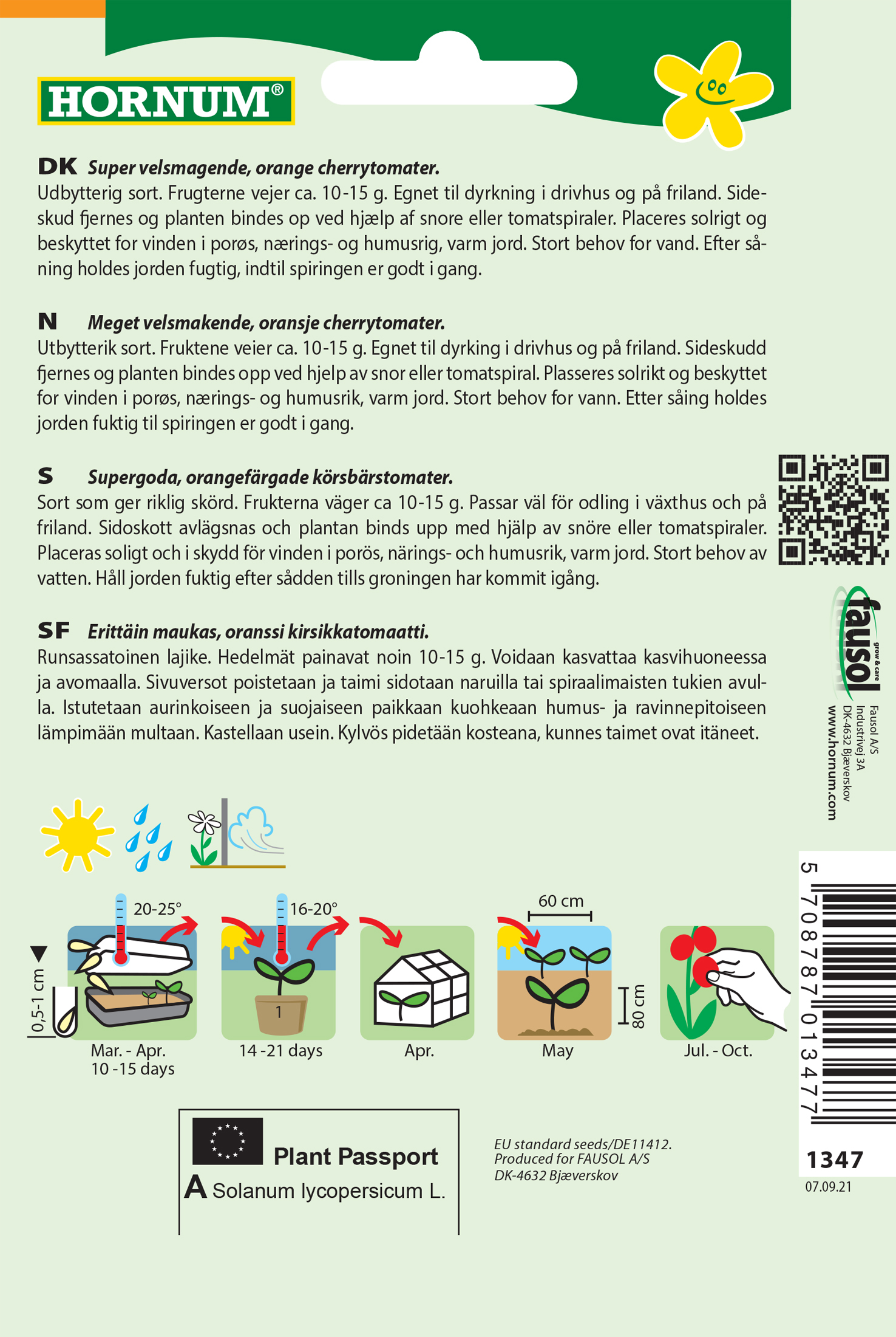 - Fræ Tómatar Solanum lycopersicum Sungold F1