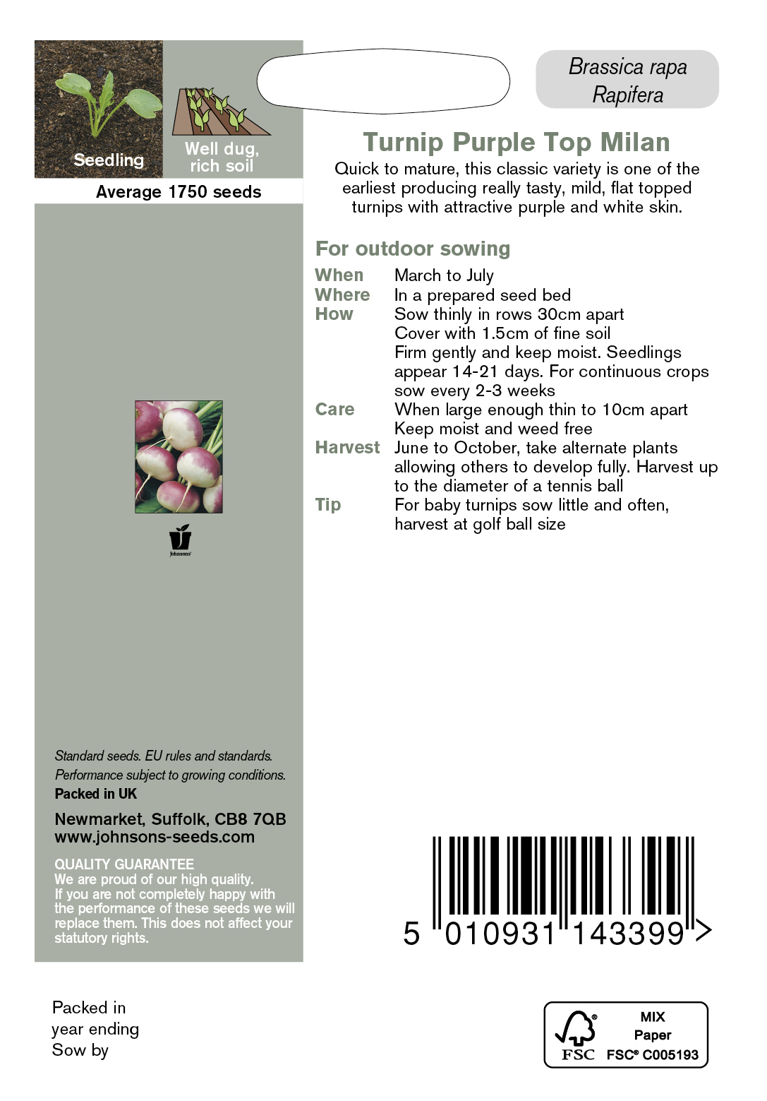 - Fræ Turnip Purple Top Milan