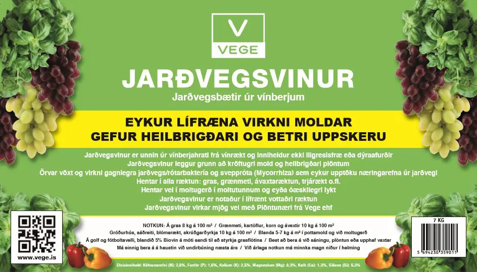 Jarðvegsbætir úr vínberjum. Eykur lífræna virkni moldar. Gefur heilbrigðari og betri uppskeru.