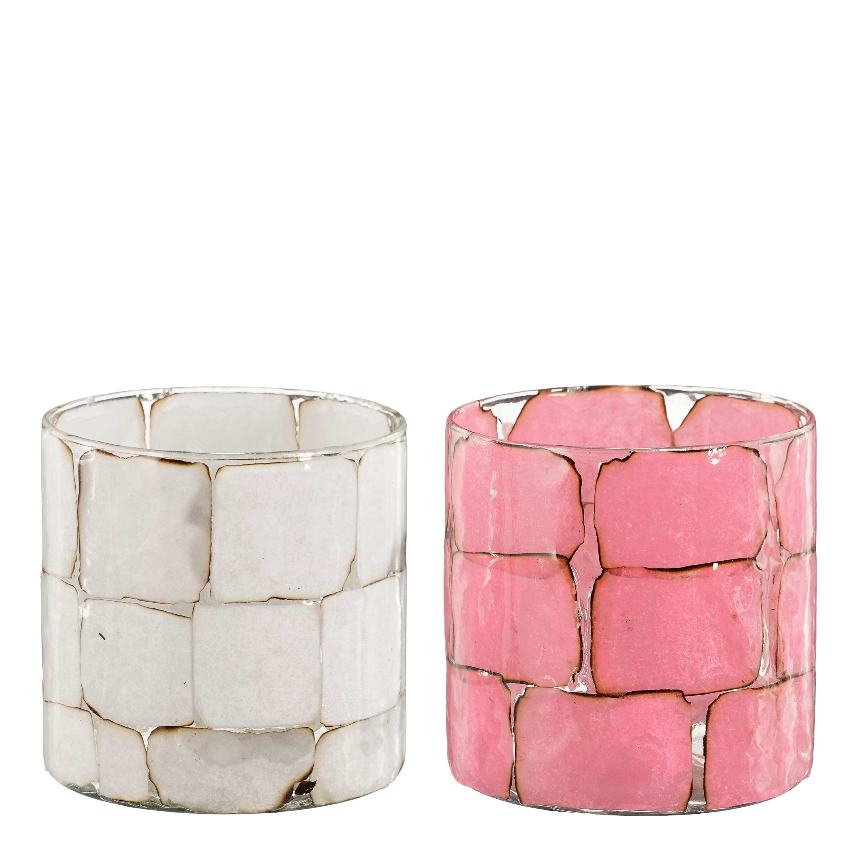 Kertaglas gler 10*h11cm hvít eða bleikt