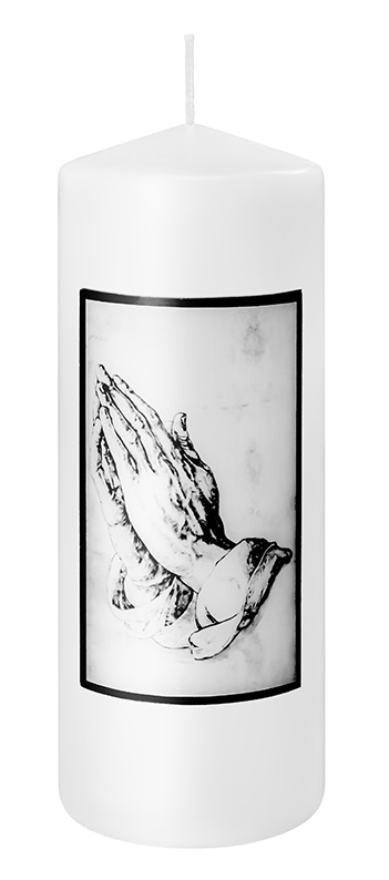 Samúðarkerti 8*20cm hvítt með höndum