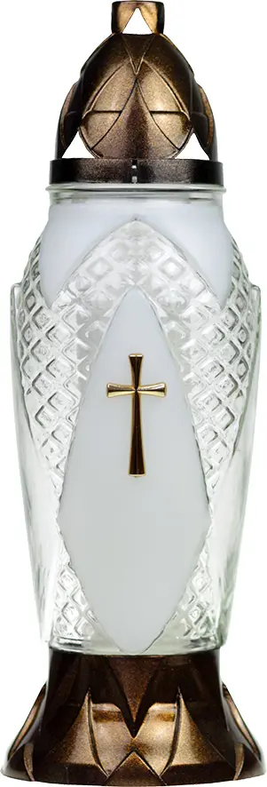 Leiðisljós gler með gylltum krossi