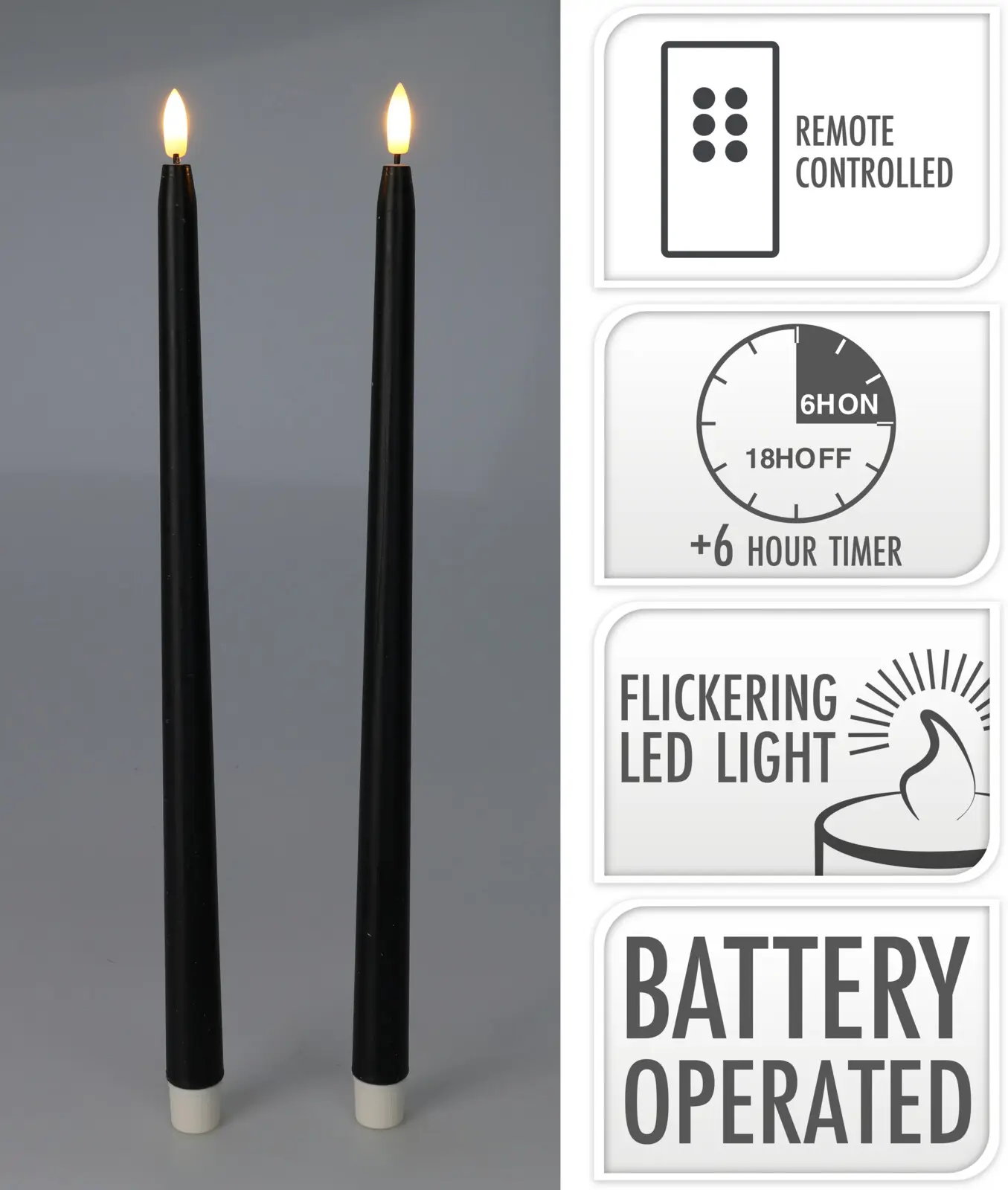 Rafmagnskerti 2stk 38cm svört