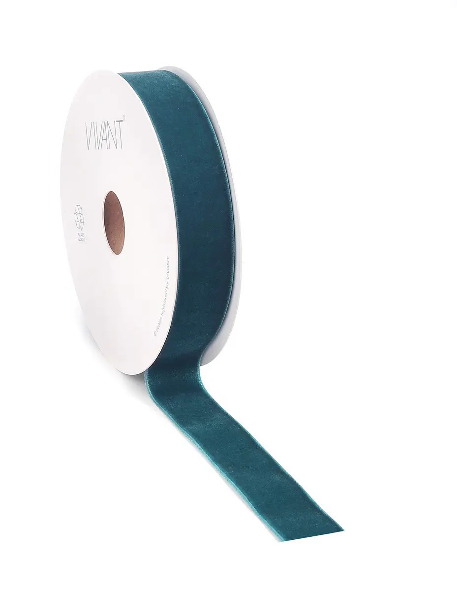 Borði velvet 25mm*10m petrol blár
