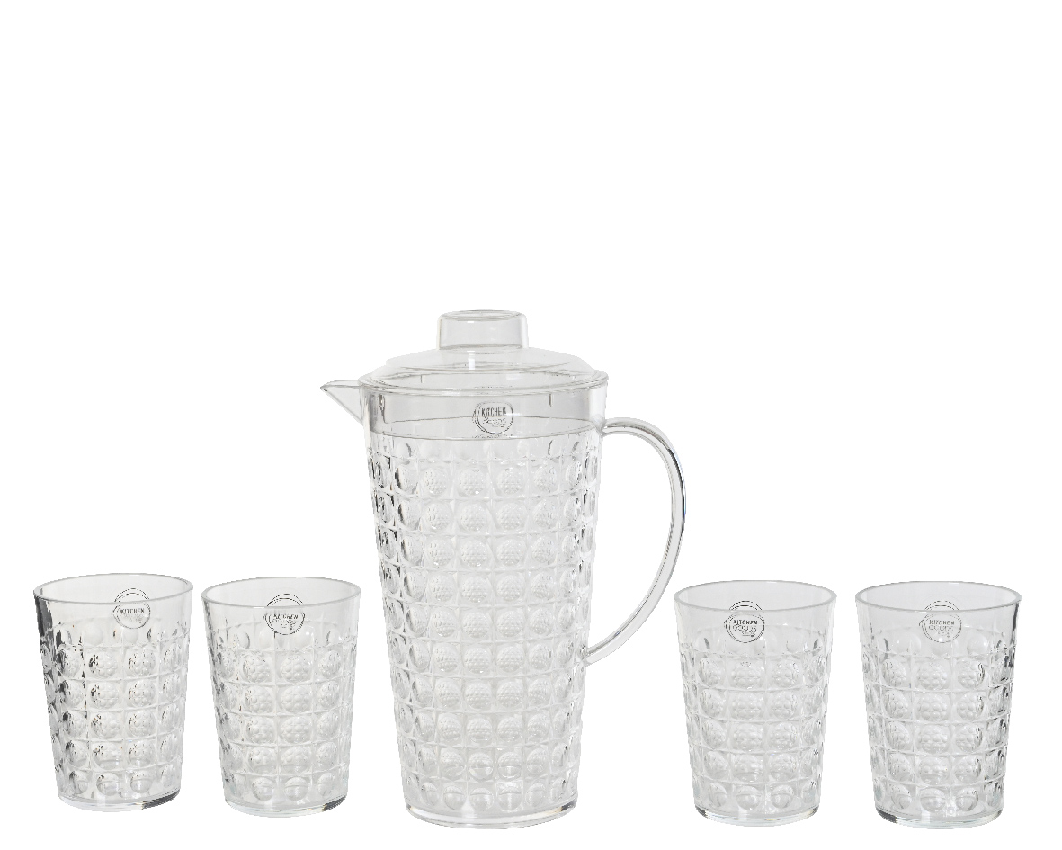 Kanna og 4 glös úr plasti glært 13*h27cm