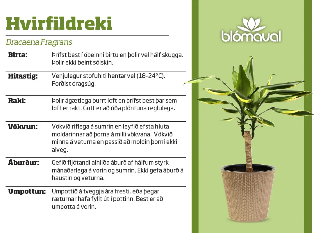 - Dracaena Fragrans/Drekatré Janet Lind í 24cm pt.