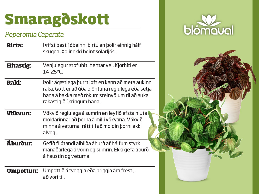 - Peperomia Caperata/Smaragðskott 'Red Luna' í 11cm pt.