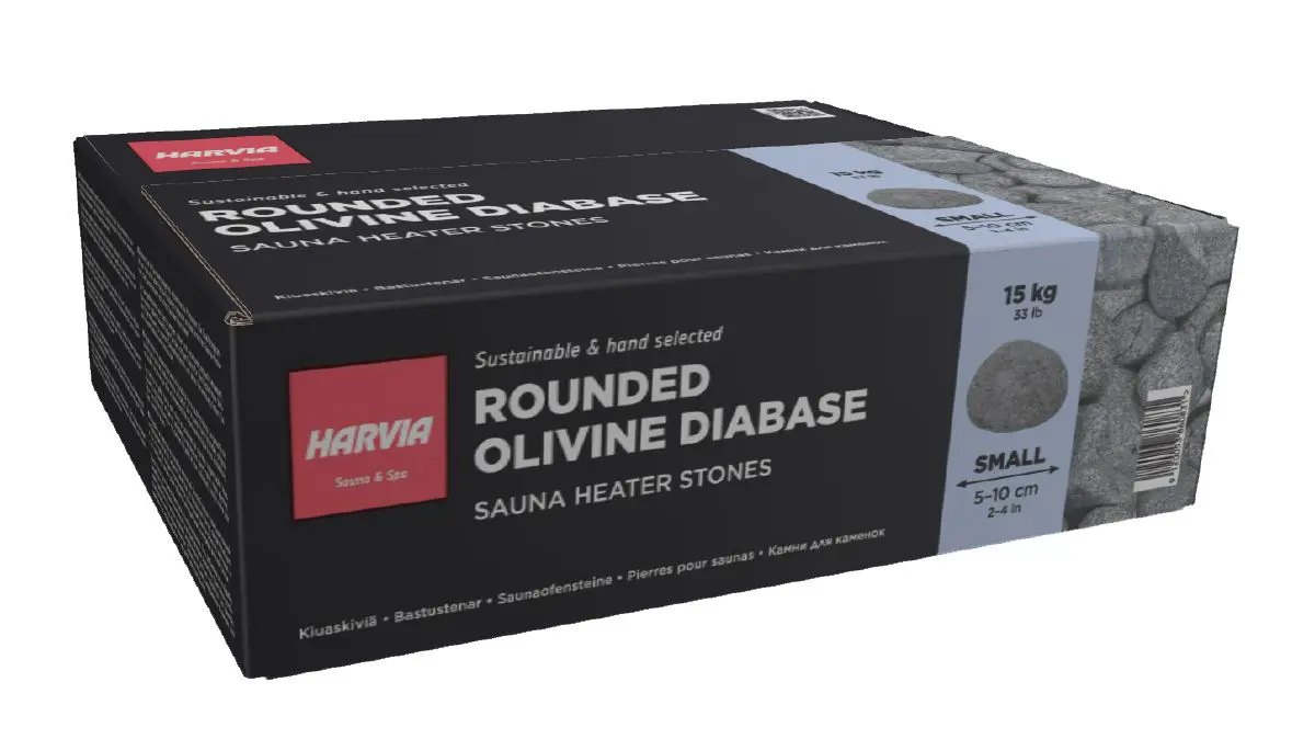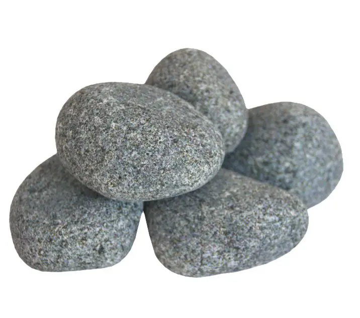Upplýringar: Ávalir Olivine Diabase sánasteinar líkjast ávölum flúðasteinum. Notkun þessa steins gefur mjúka gæða gufu og vatnið rennur auðveldlega niður í neðri steinalögin. Þannig nær vatnið meira yfirborði og myndar meiri og þéttari gufu. Þessi aðferð við að nota ávala steina á efsta lag hitara virkar í öllum sánasofnum. Við mælum með því að nota hyrnda steina í botnlögin þar sem þeir gefa meira upphitunarflatarmál fyrir vatnið. Þessi samsetning gefur bestu útkomuna fyrir góða og þétta gufu og mikinn hita, sérstaklega í hitara með minni steingetu.
