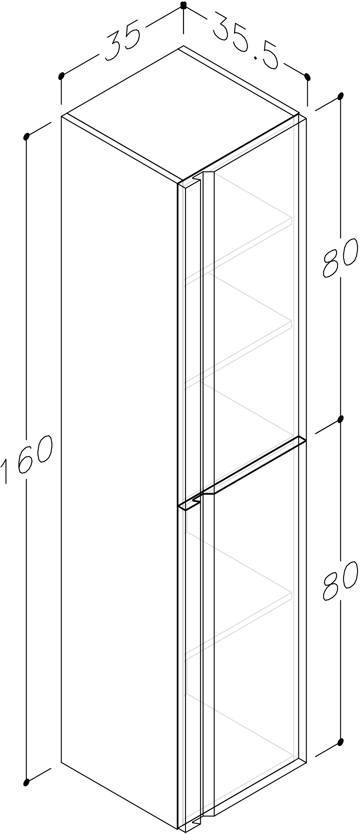 - Hár skápur 35x160cm Matt svart