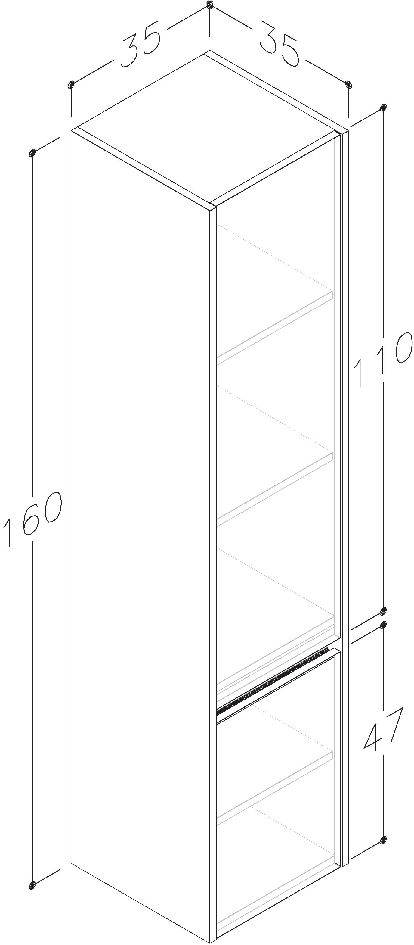 City háskápurinn í hvítum lit er klassísk viðbót við baðherbergið sem stækkar rýmið sjónrænt. Hreinar línur hönnunarinnar eru undirstrikaðar með stílhreinum álprófílum sem gefa skápnum nútímalegt og fágað yfirbragð.