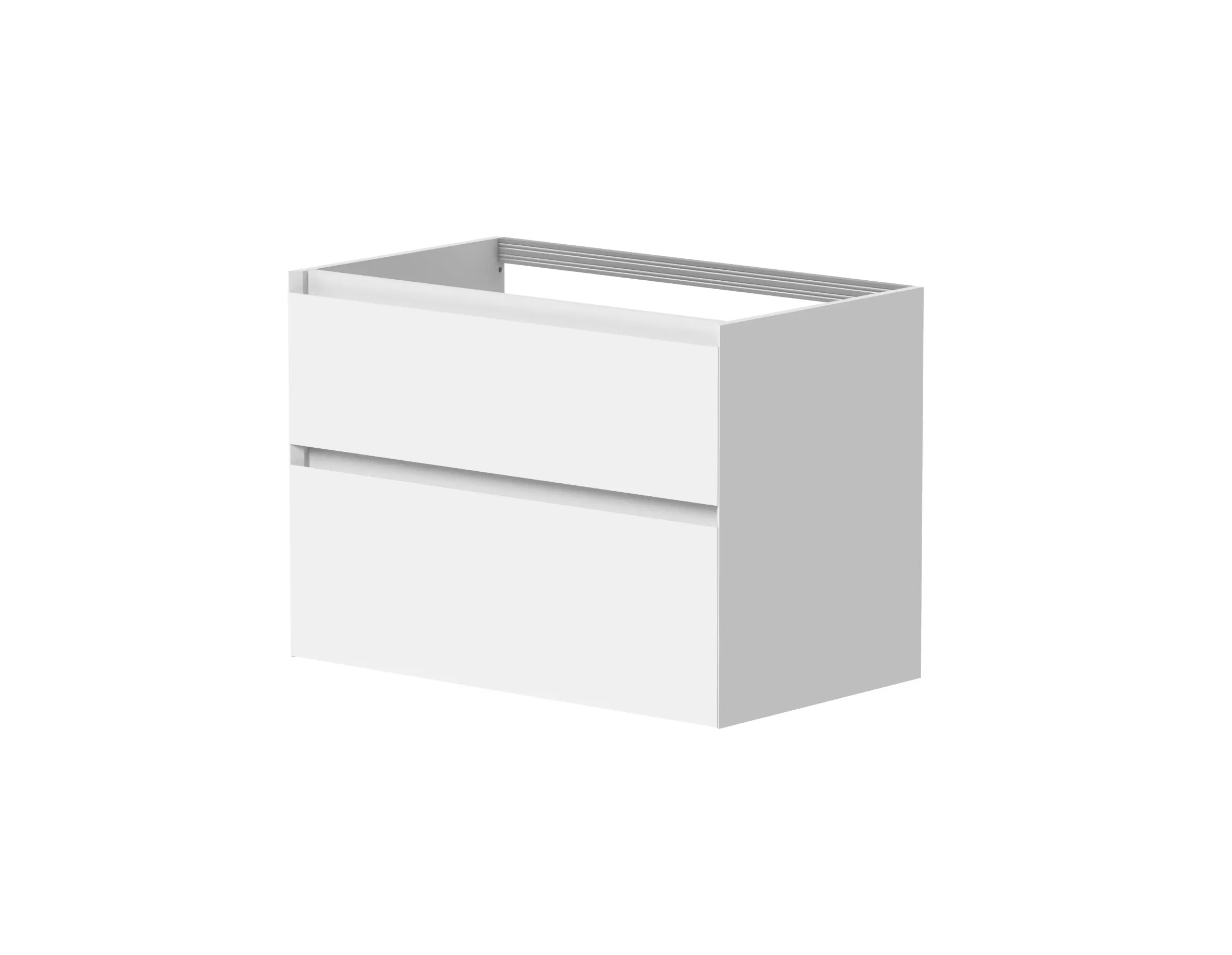 Vandaður vaskaskápur með tveim mjúklokandi skúffum. Hentar vel í minni baðherbergi. Innrétting kemur samsett. H56xD45,5xB79