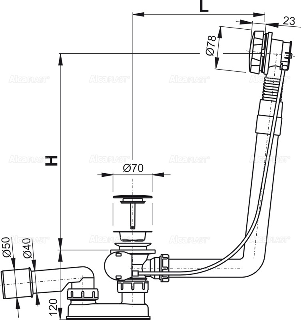 Lyftitappasett króm 50mm-80cm barki