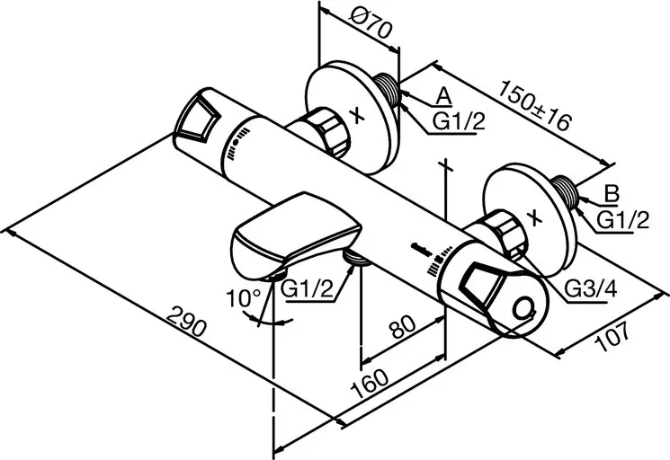Damixa Thermixa 400 Art.nr. 57504 Lengd 290 mm Þykkt 107 mm Bil milla gata 150 mm