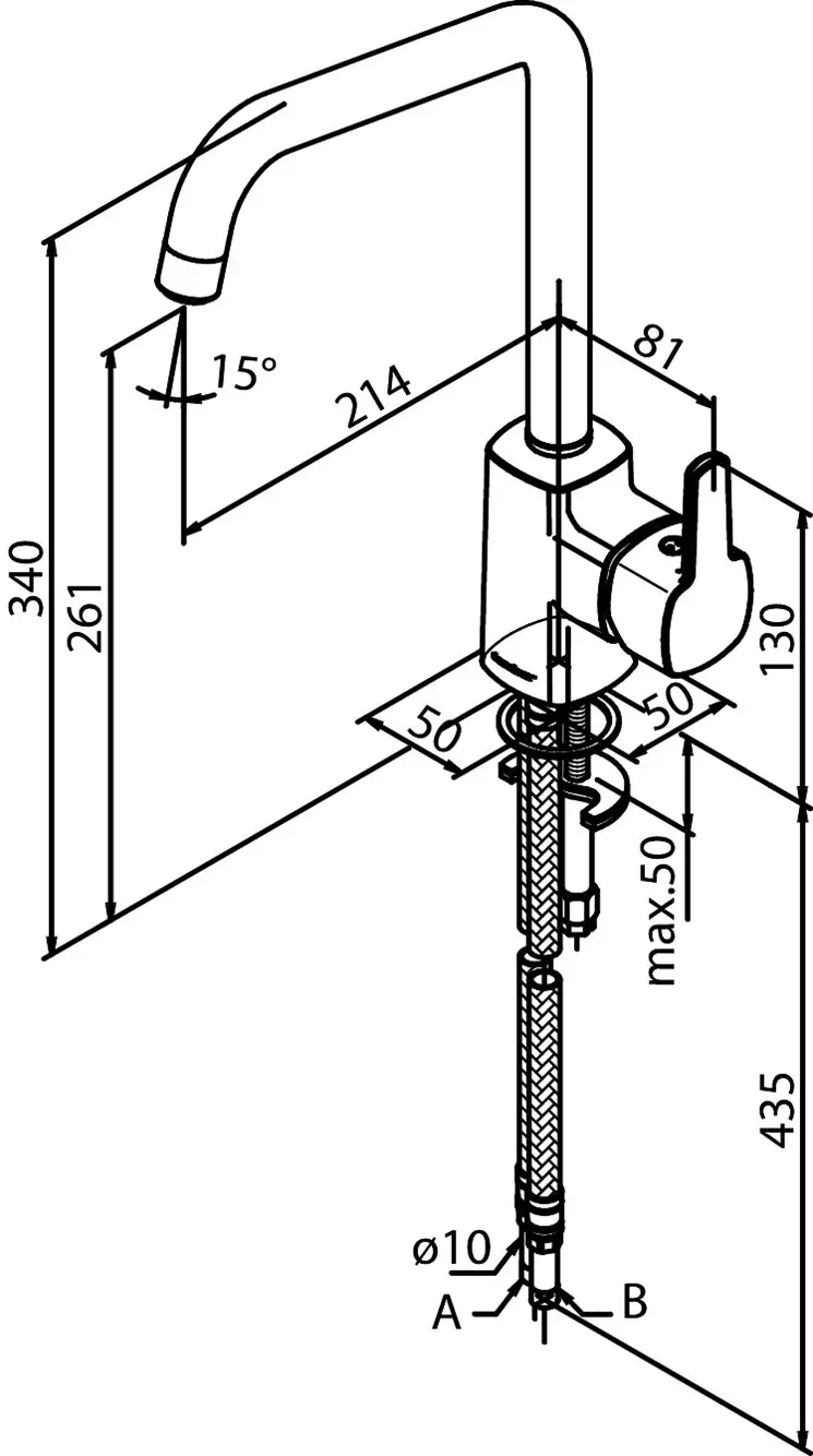 damixa Pine Art.nr. 17066 Krómuð eldhústæki Breidd 50 mm Hæð 340 mm 8 ltr. / 3 bör