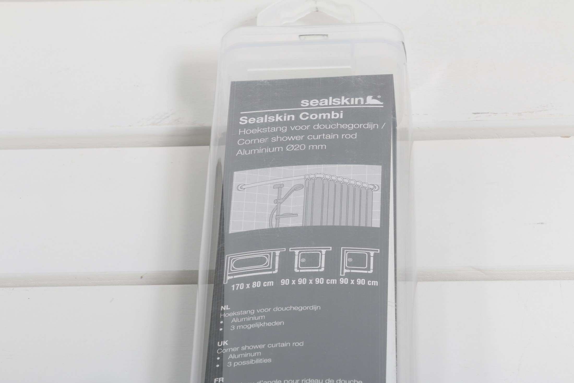 WC baðhengisslá hvít. 3 möguleikar á samsettningu 170 x 80 cm, 90 x 90 x 90 xm eða 90 x 90 cm.