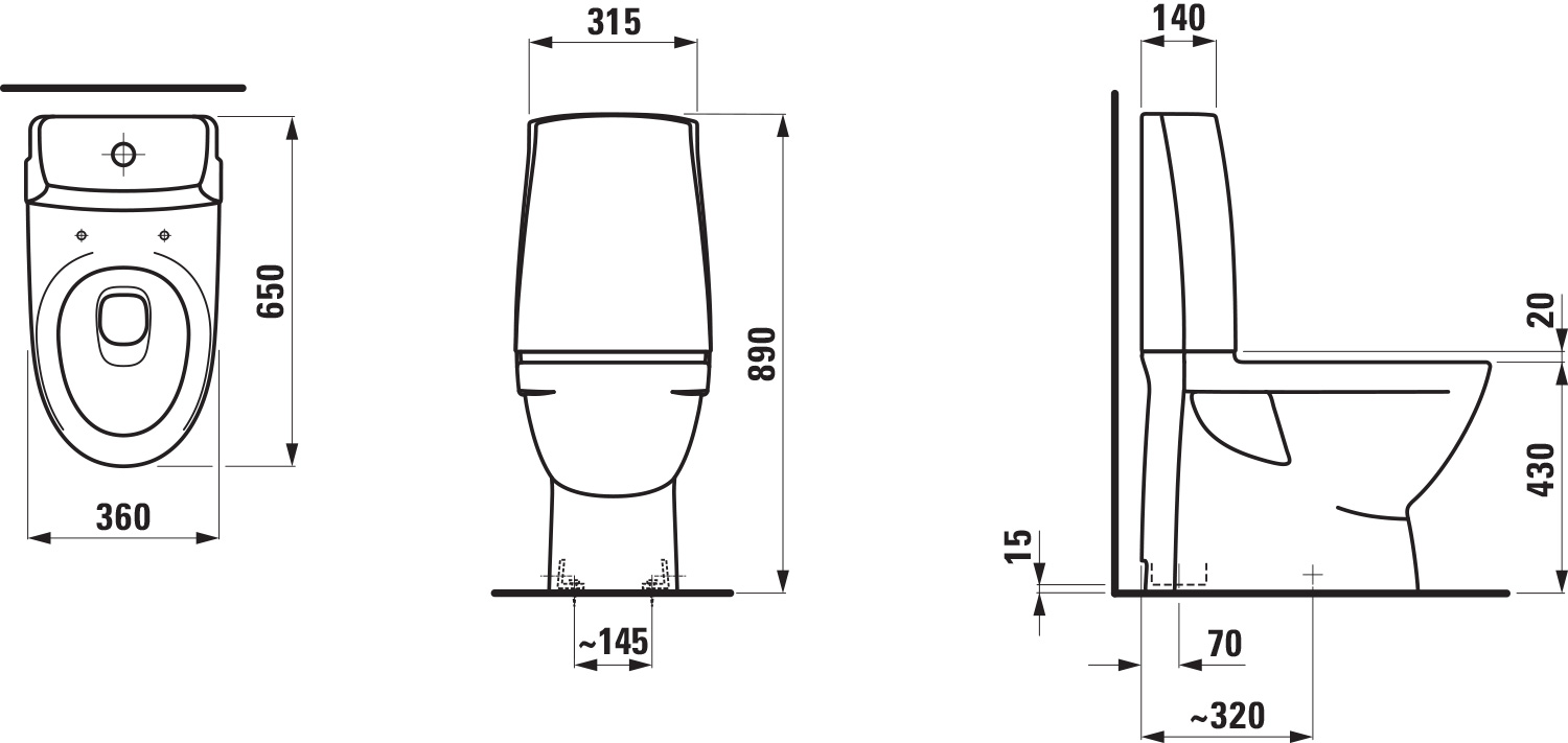 LAUFEN PRO-N Art.nr. 827950 S-lás gólfstútur Lengd 650 mm Breidd 360 mm Hæð 890 mm 70 mm í miðjan stút Hæð að setu 430 mm Setur: Vnr. 8048605