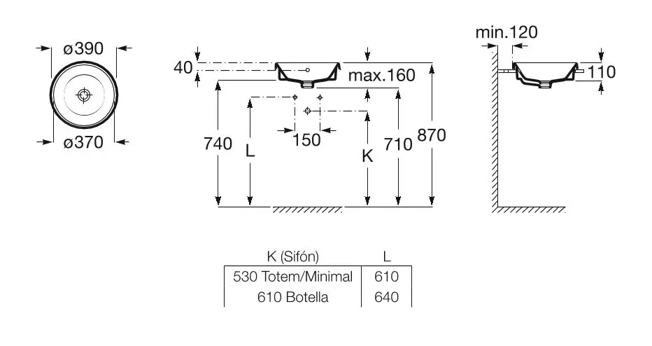 - Borðhandlaug Roca 39x39cm