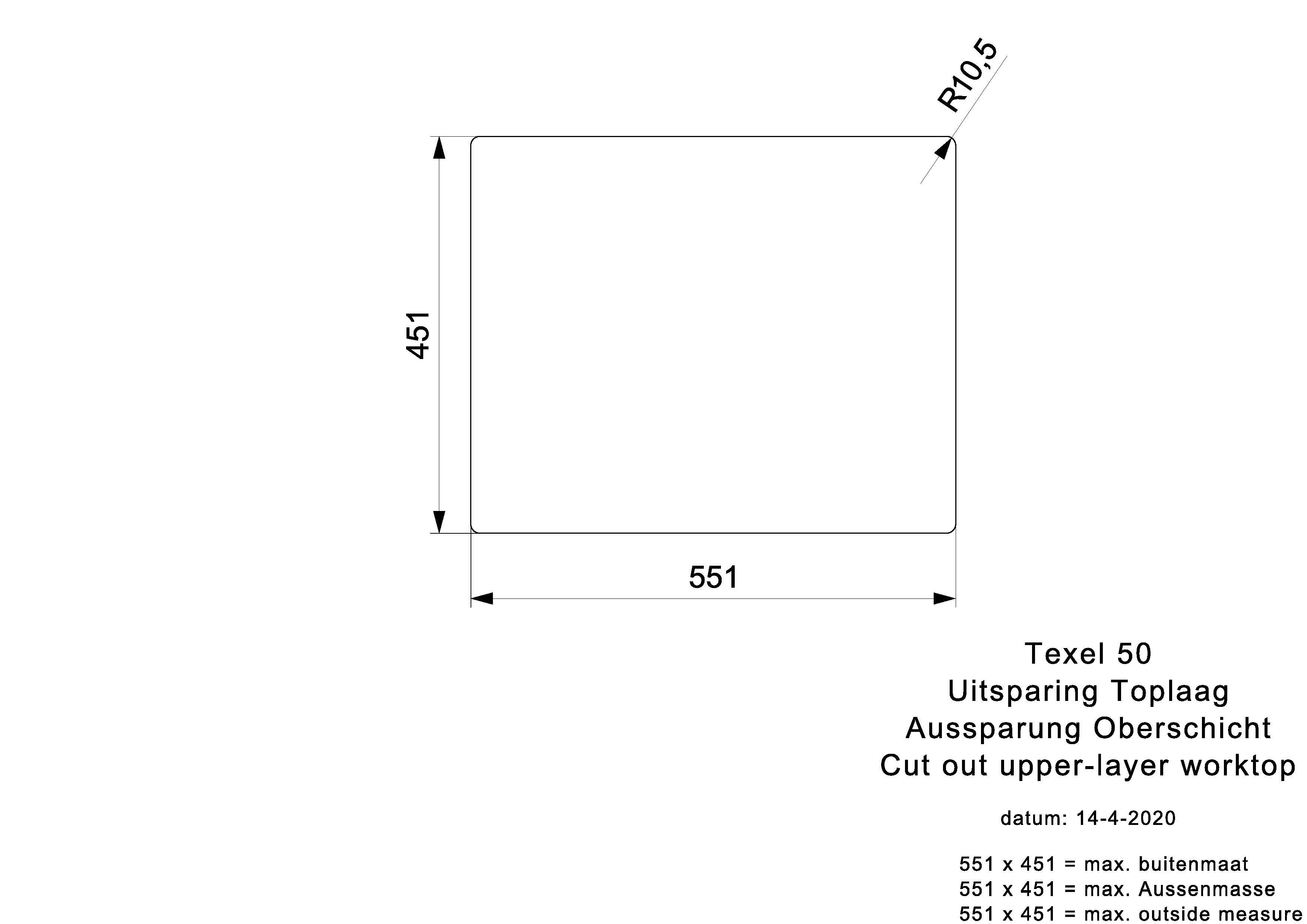 - Vaskur eldhús Texel 50x40 Pure Black - R34668 undir borð