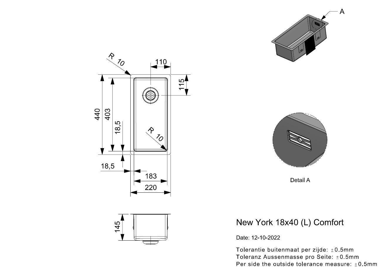 - Vaskur New York 180x400x165mm