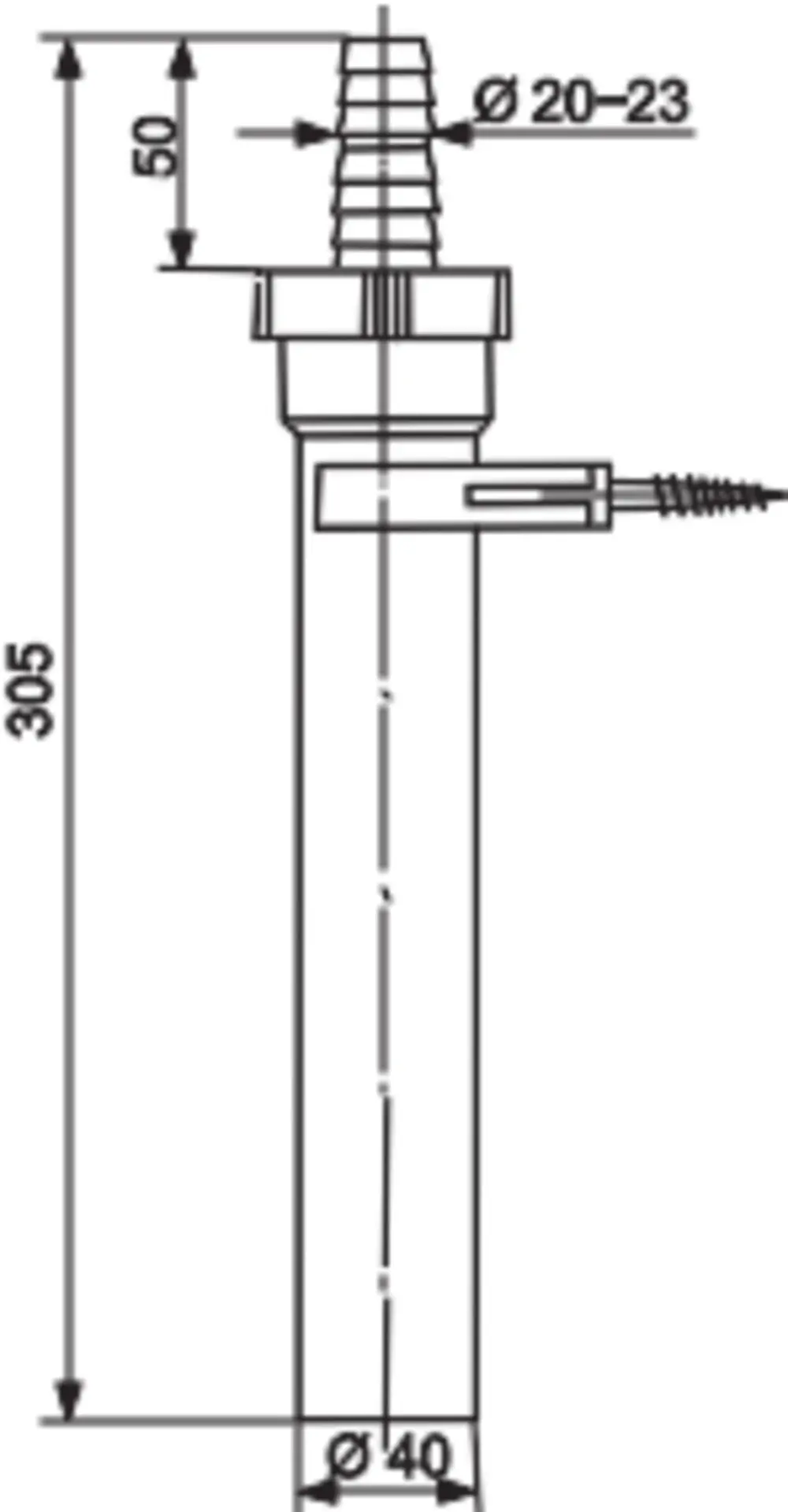 Þvottav-stútur 11/2" + rör 40x300