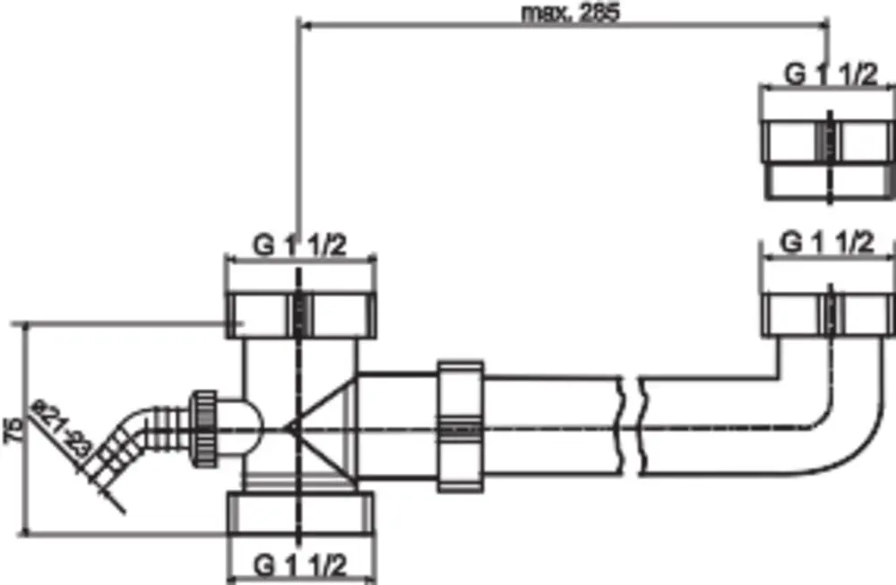 SAMTENGI FYRIR TVÖFLADAN VASK MESTA LENGD MILLI HÓLFA 285MM SLÖNGUSTÚTUR VATNSLÁS SKRÚFAST BEINT NEÐAN Á AÐRA TENGINGUNA