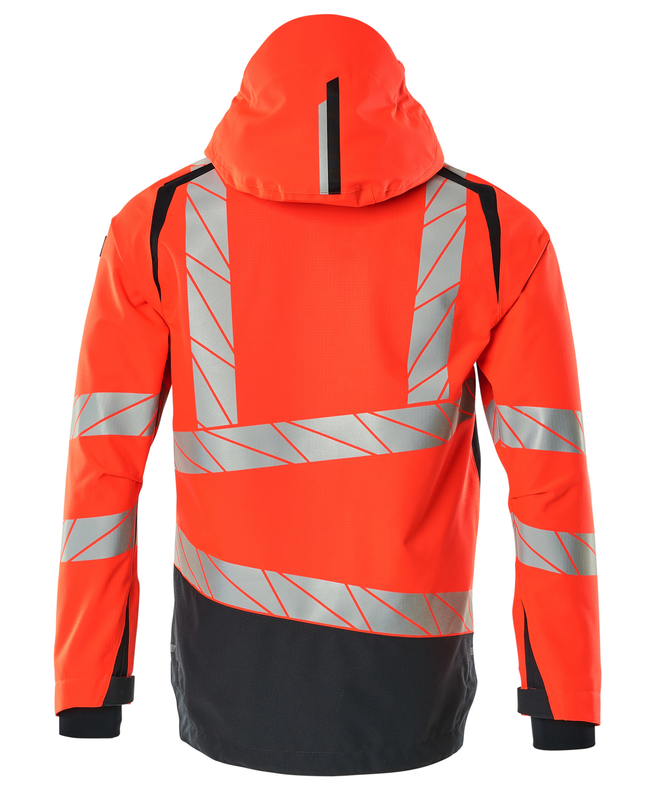 Vatns,-og vindheldur jakki með öndun og sýnileika.