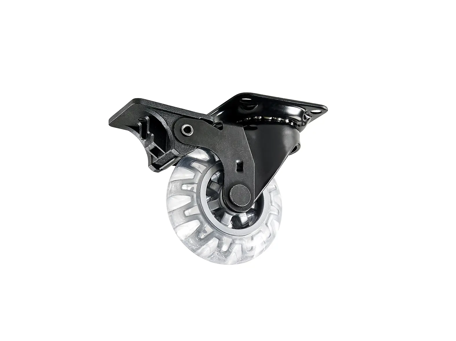 Hjól 50 mm glært með snúning og bremsum ber 40 kg