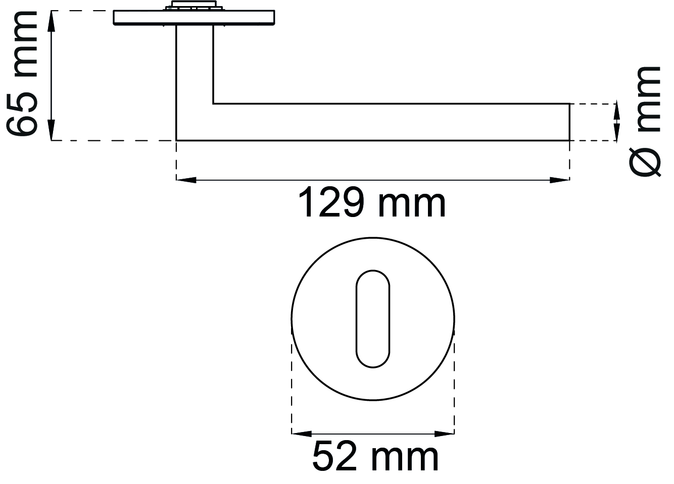 Þvermál hurðarhandfangs 19 mm.