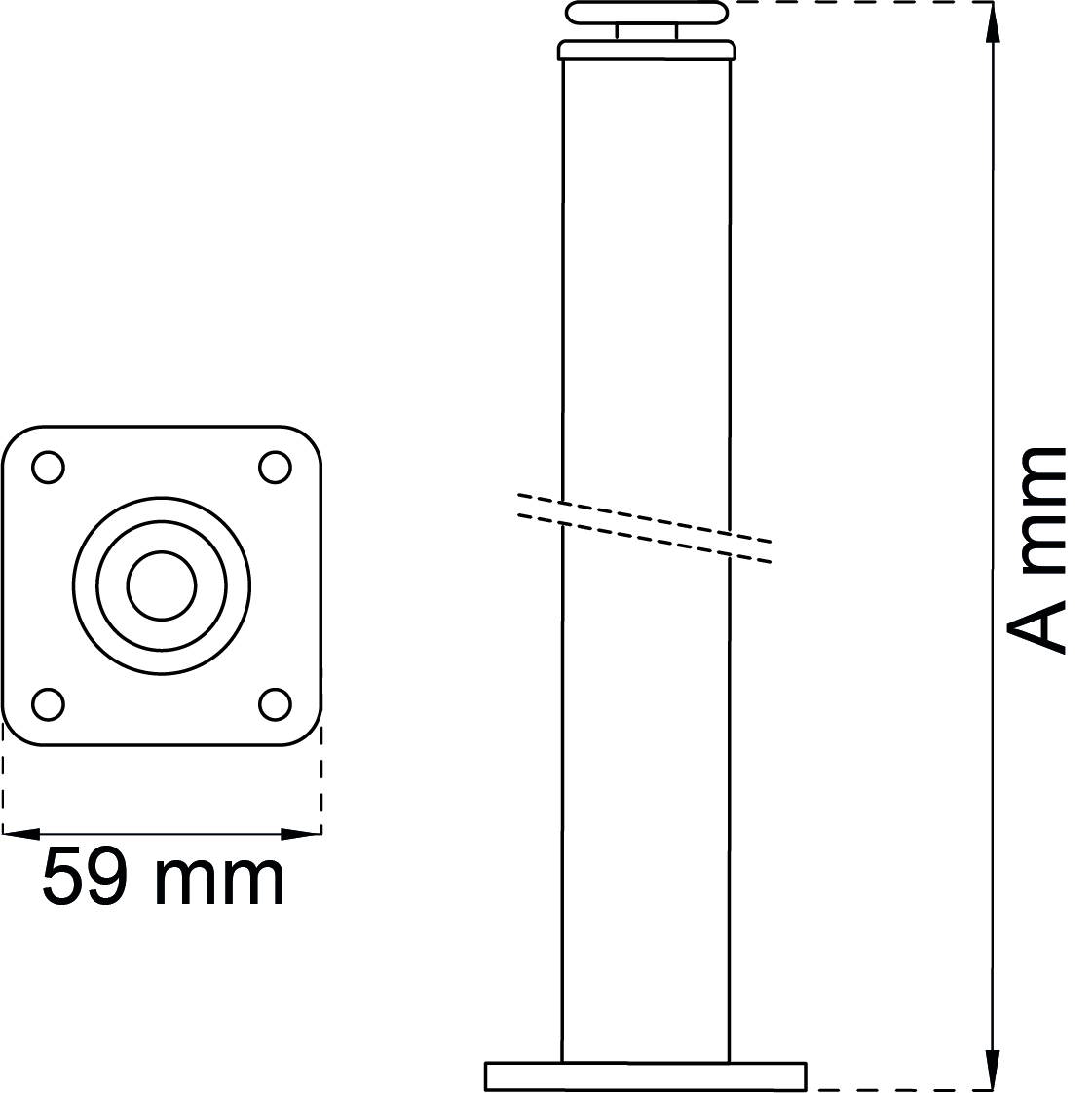 - Borðfótur 70 cm matt nikkel