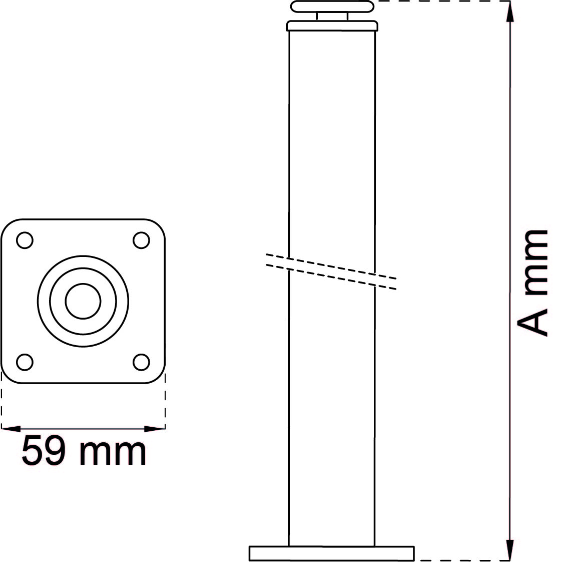 Borðfótur 70 cm svartur