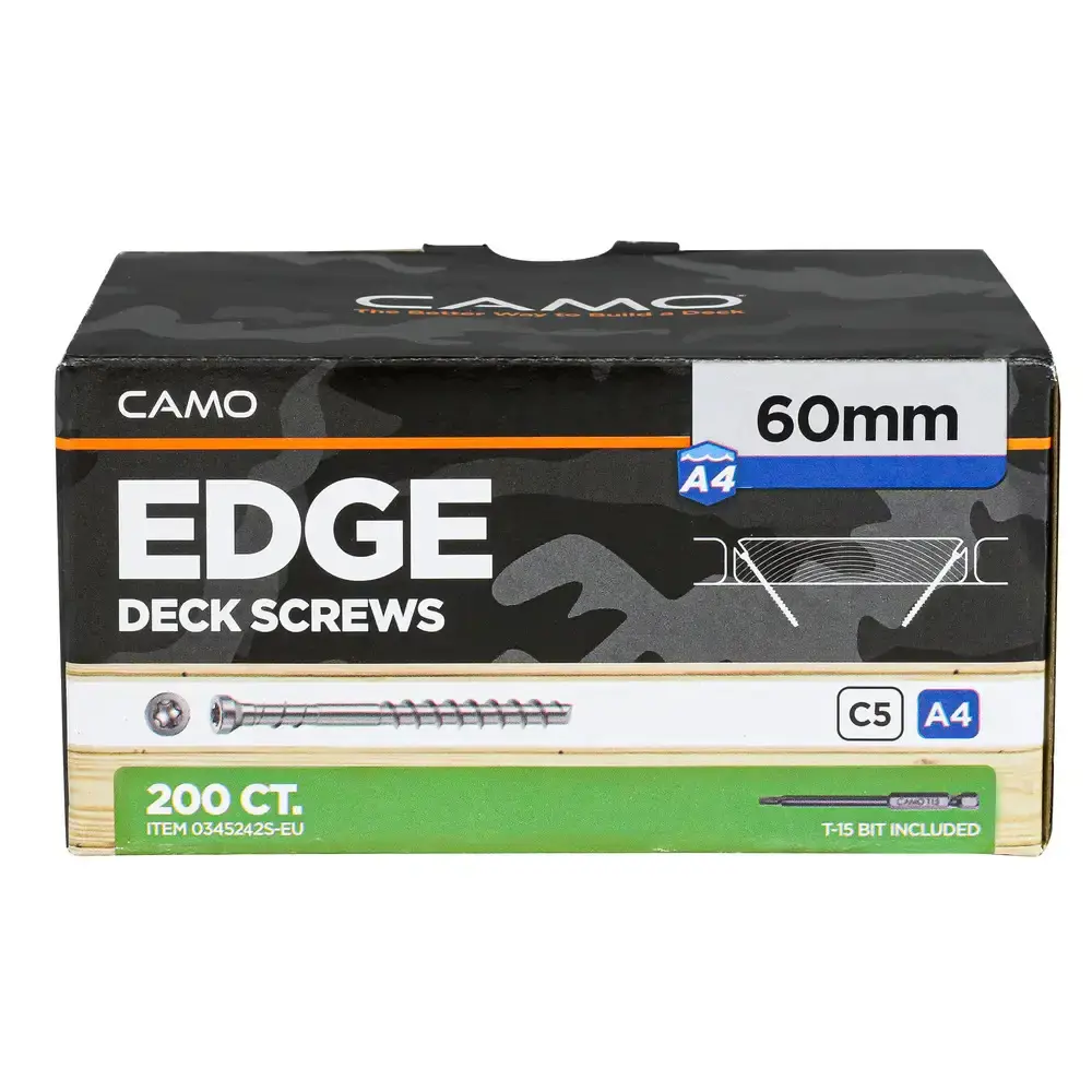 CAMO pallaskrúfan er hönnuð fyrir falið festingarkerfi sem tryggir slétt og öruggt yfirborð án sýnilegra skrúfahausa – tilvalið fyrir verönd, svalir og önnur útisvæði þar sem útlit og öryggi skipta máli.
